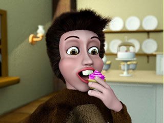Besides her soft nature though there is a darker side. She has four stages of temper, biffy, grunty, growly and lastly grizzly. When she reaches grizzly mode she transforms from her lovable cuddly self into a VERY large and aggressive grizzly bear-type creature. This mode does take some reaching however, but is her only means of protection from anything that would threaten her safety. She lives in her igloo in Bear Wood which has a tree growing through the middle of it. She is very house proud and is constantly cleaning and dusting her igloo which contains a massive bed. You see when she first yawns that's a sign to her that it's time for hibernation - sleeping to you and me - and she will literally drop everything and head straight to her bed, crawling under the covers to her pillow making sure she is snug and comfy and then she hibernates until its time to get up. Which could be any time! Bella Bear does not live on the usual sort of wild bear foods. No, she has a very sweet tooth and one of her biggest obsessions is her favourite and usually only food - sweets, cakes and biscuits. She will literally stop anything she is doing if she sees sweeties and usually scoff the lot. Which is why she is a bit podgy! |