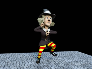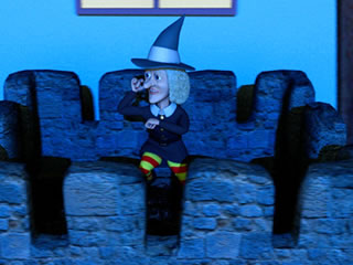 She does have a cauldron, pointy hat, broomstick and does cast spells, but she too usually gets her spells wrong. This is primarily due to the fact that she is getting on a bit and her mind is getting a bit fuddled... At twelve o'clock midnight (the witching hour) she can be seen flying around on her rocket-powered broomstick, and although she hasn't yet fallen off she has come close. She sometimes drops into Bella's igloo when Hannah is there to tell them stories by the fire of things that happened centuries ago because she is about six hundred years old. In fact nobody really knows how old she is, not even Witchy Peg! Most Witches have a familiar in the shape of a cat, owl or bat. Witchy Peg however, has a goblin - 'Alf' the goblin. |
